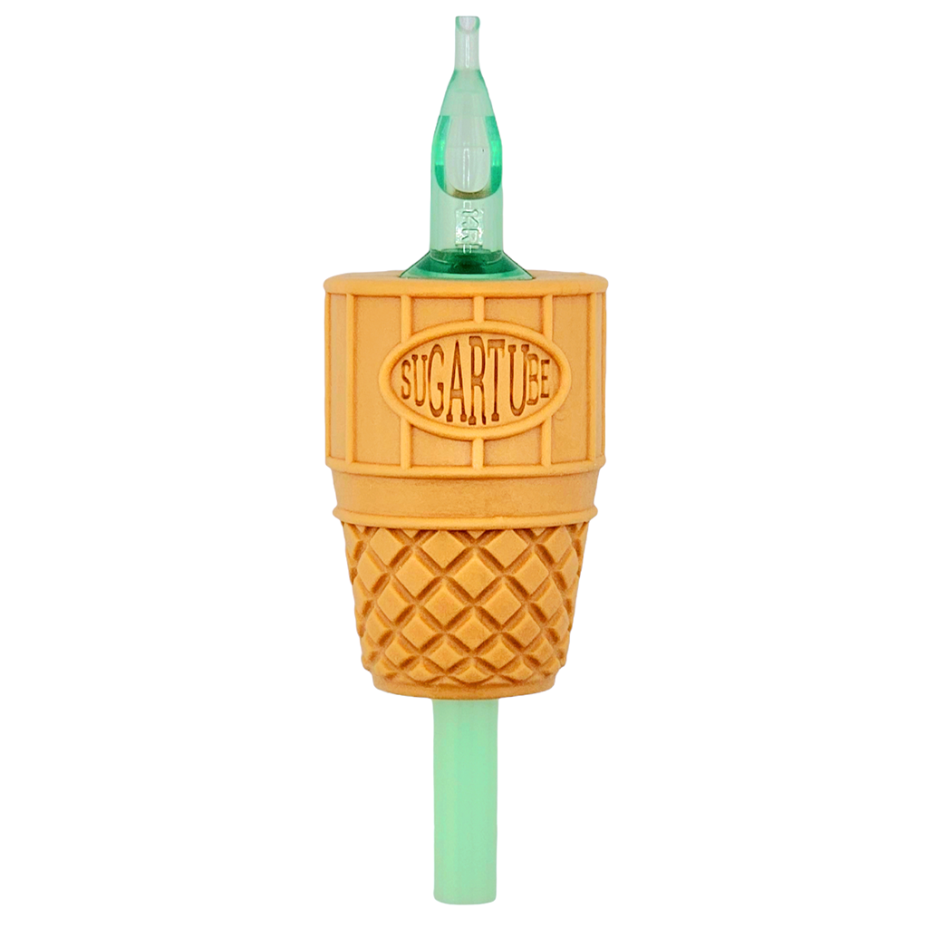 Sugar Tubes come with a true to size back stem and a thicker wall to help prevent flex, vibration and cracking that is so common in inferior products. The transparent Mint Tips are made from medical grade plastic, witch in turn makes for a smoother more rigid tip. The results of our higher quality tips is less drag. The tips on Sugar Tubes have a great inner well that allows ink to fill and flow nicely without any problems and easy washout. The Grip? Well the Grip has a great shape with a square ledge for better control while feeling great in your hand. The grip was designed to help with fatigue on your hands at 1.3 O.D. in size. Paired with Unicorn Horns we don’t think you could possibly go wrong. We hope you enjoy! 15 QTY per box.